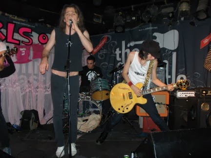 A mixed bag at the Dublin Castle tonight - glam, punk, and sleazy rock 'n' roll. Hey - it's not as bad as it sounds! Honest. ![]() Rapid Fire Radio (formerly the Gift Whores) open the show. I'm not too impressed with their sloppy 80's style rock 'n' roll to start start with, but towards the end of their set they seem to pull things together and I start to enjoy them a bit. Or maybe it was the beer kicking in? ![]() Bubblegum Screw churn out some heavily New York Dolls influenced sounds and play tightly. In Mark they have one of the Camden scene's best Jagger/Johansen style frontmen - he has all the moves down. 'Rock 'N' Roll Loser' is probably their best song at the moment and gets saved until last. Girls On Top must have played at the Dublin Castle countless times and have built up a regular and loyal following over the years. The guitarist's name is Neil Downe - which might explain what he's doing down there... Yes, the more observant of you will have noticed that the band aren't actually all girls - although most of them are. Over their three albums to date they have some catchy (if derivative) tunes and always seem to get the crowd going. They are basically a tuneful punk band with a 50's/60's pop influence - and are actually a lot sleazier than than most the current crowd of 'sleaze rock' bands doing the rounds in Camden, and more entertaining too. Not to everyone's taste, but I find they are always good fun. |